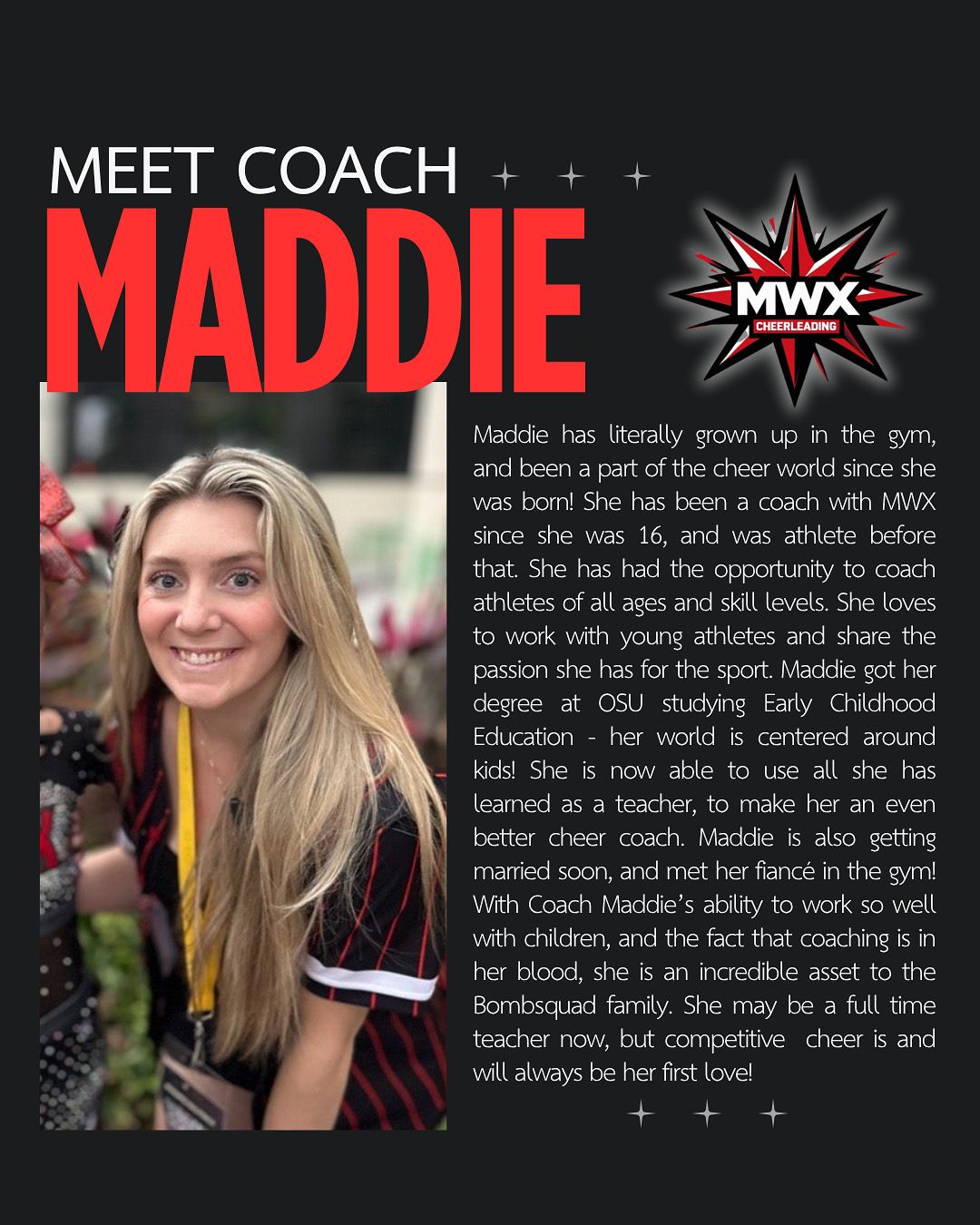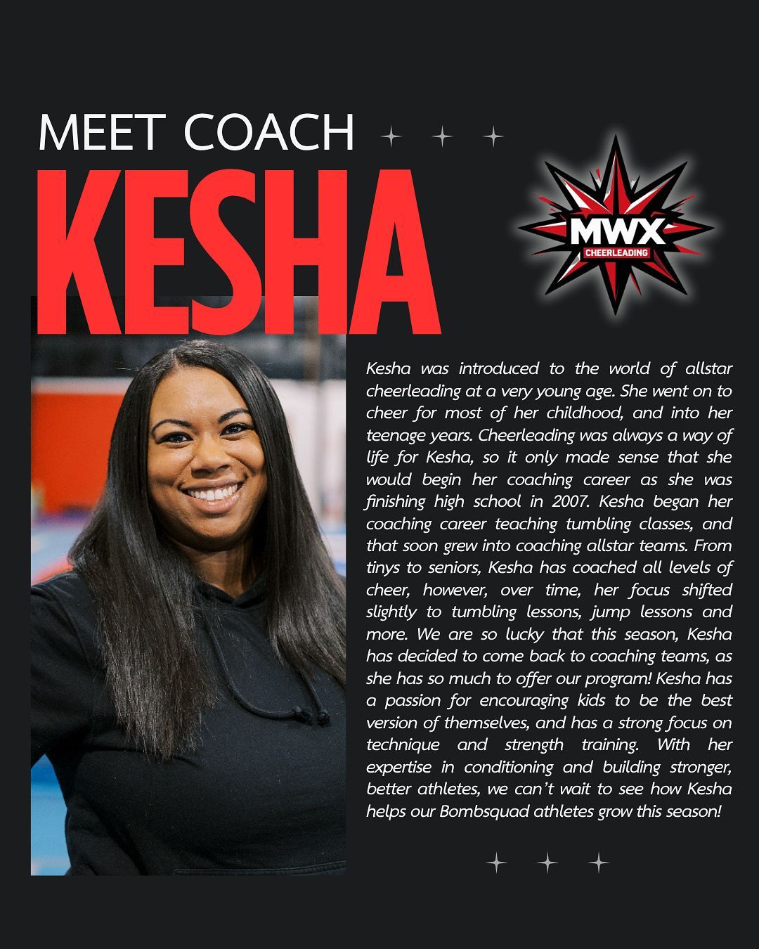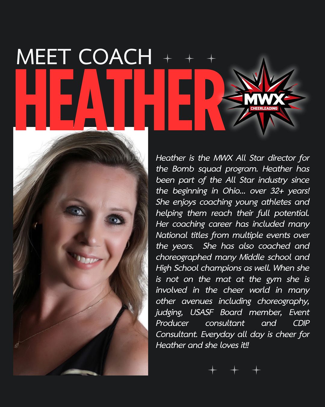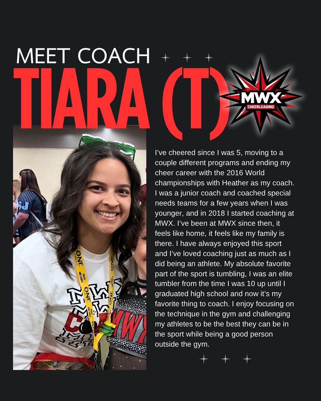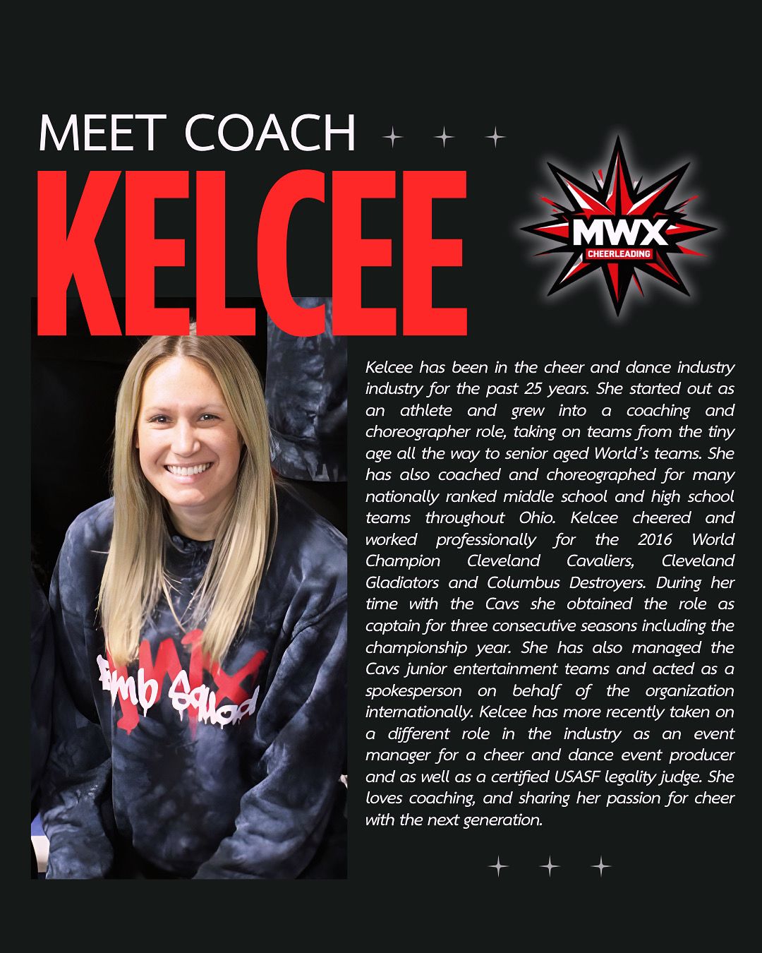 Coach Rachelle Wyatt brings over 20 years of cheerleading experience to MWX. As a decorated coach with several NCA titles under her belt, she brings a championship mindset, strong leadership, and a deep love for the sport to every practice and performance. Known for her high energy and dedication to technique, Coach Rachelle focuses on building confident athletes through strong fundamentals, teamwork, and a positive team culture. She’s passionate about developing not just skilled cheerleaders, but well-rounded individuals who lead with character both on and off the mat.